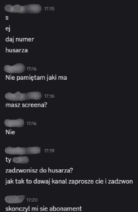 Poniżej przedstawiamy jedyny posiadany przez nas dowód na domniemane głuche telefony do Husarza, a więc krótki zapis narady na jakiejś, bliżej nieokreślonej grupce na Discordzie. Jeżeli dobrze się orientujemy, to Pan Husarz do dnia dzisiejszego nigdzie nie opublikował chociażby zrzutu ekranu z takowymi połączeniami. Nigdy, osoby za to oskarżane przez niego, nie zaprzeczyły tym doniesieniom, dlatego jesteśmy w stanie uwierzyć, że rzeczywiście takie coś miało miejsce.