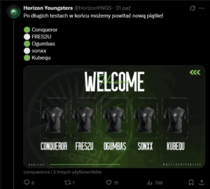 Light2k twierdził dziś na jednym ze znienawidzonych ulubionych ostatnio przez niego Discordów, że nie zrobiliśmy researchu, ponieważ Horizon nie ma składu. W tamtym momencie miał on tylko jeden skład, więc zadając pytanie dotyczące „obecnego rosteru” logiczne chyba jest, że chodzi właśnie o ten skład.